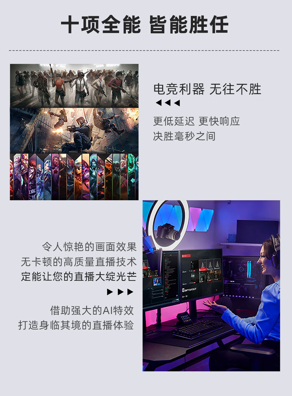 适用游戏:英雄联盟,使命召唤11,吃鸡游戏