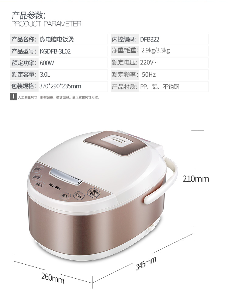康佳(KONKA)鎏金煲 · 电饭煲(升级版) DFB322