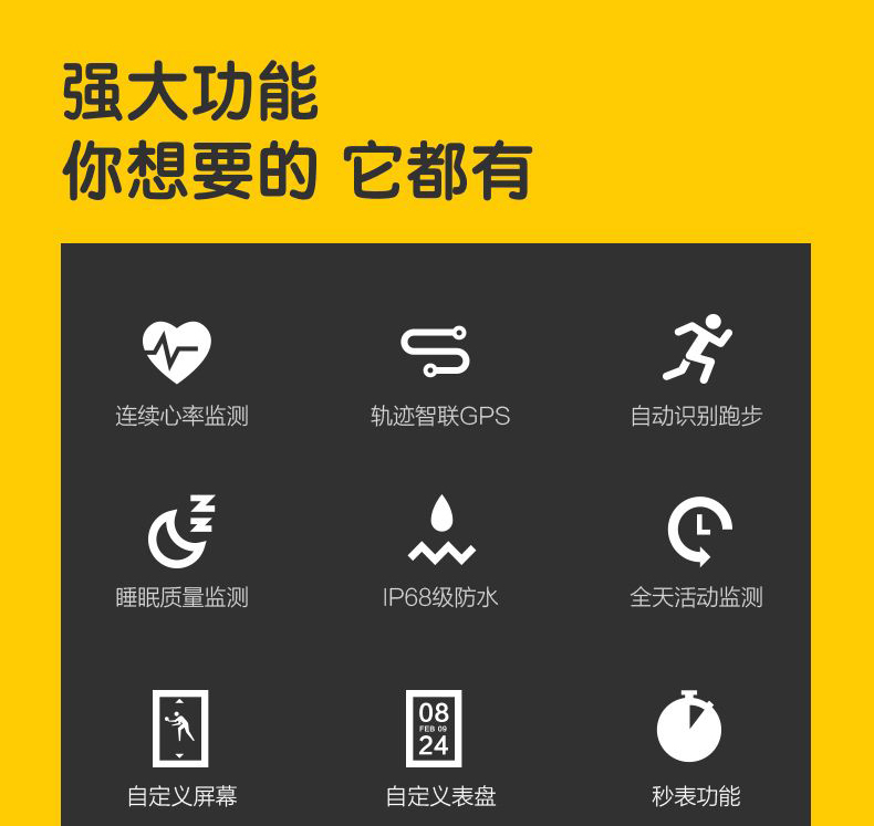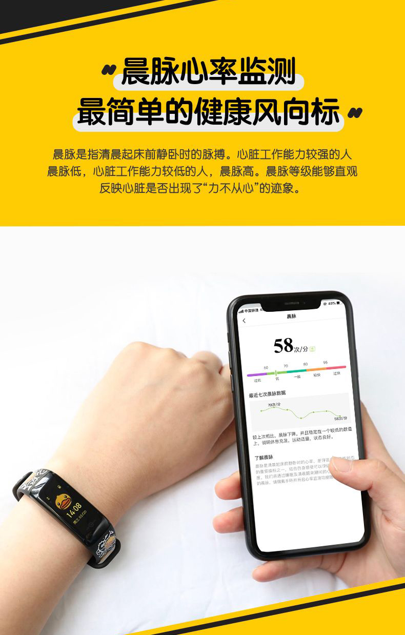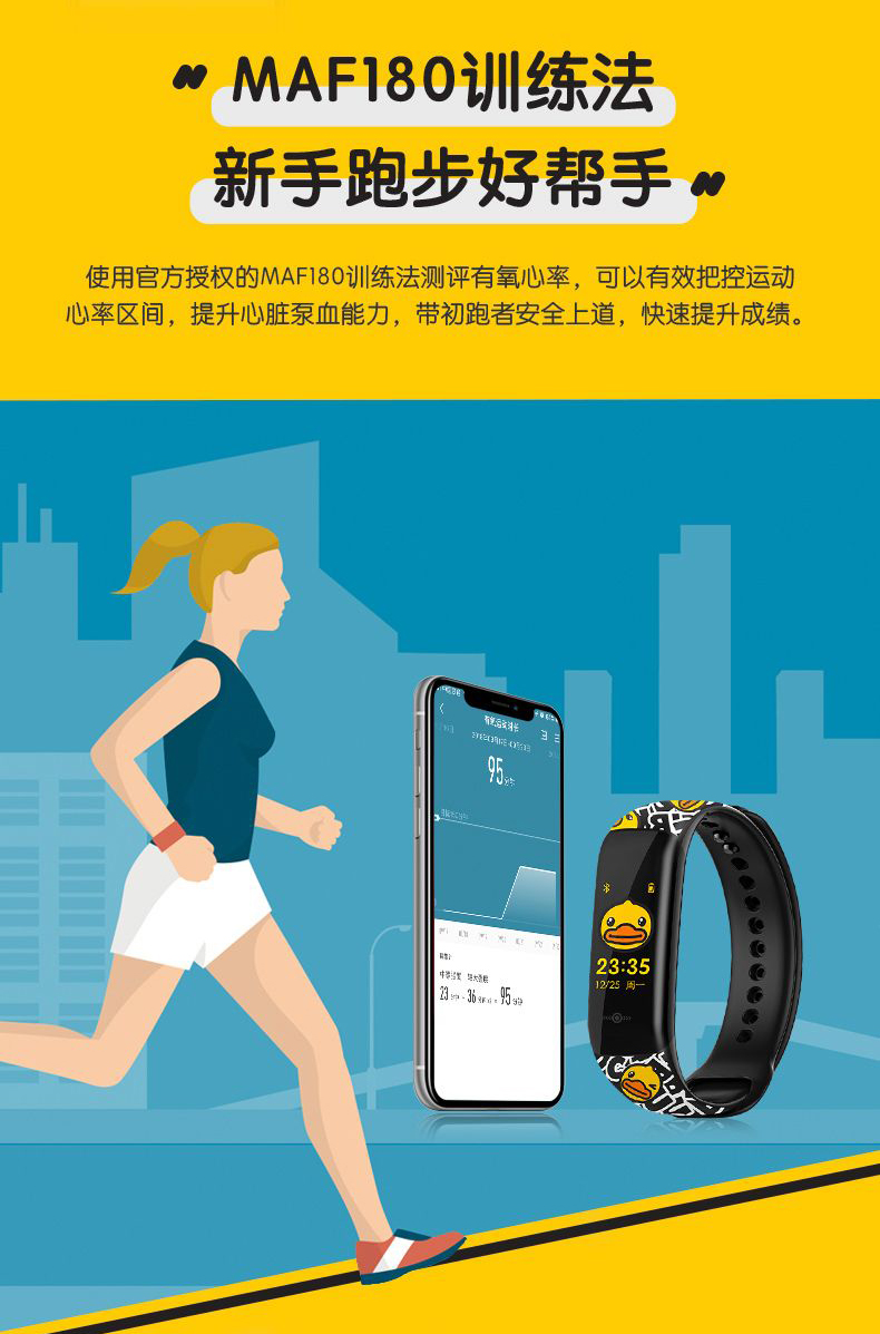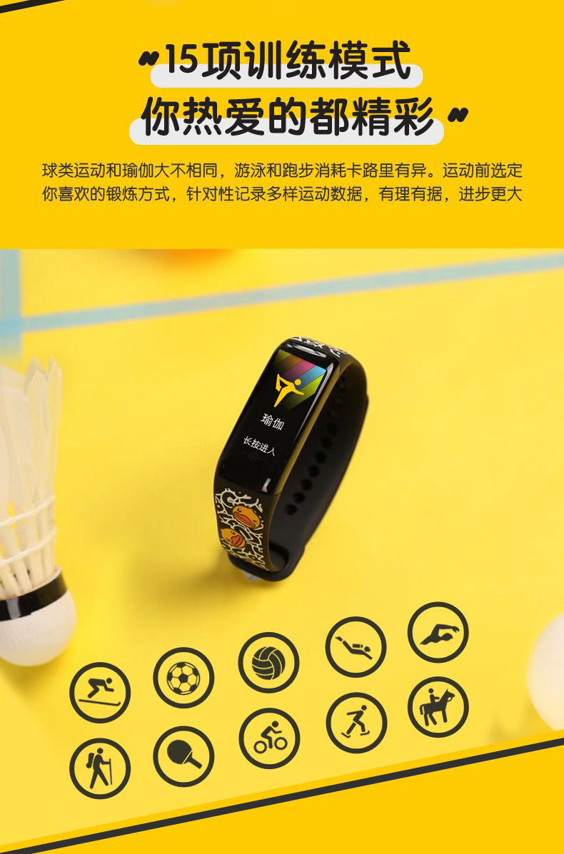 Duck 小黄鸭手环5S 智能手环 心率彩屏触控运动手环 快捷支付 15项运动识别 有氧监