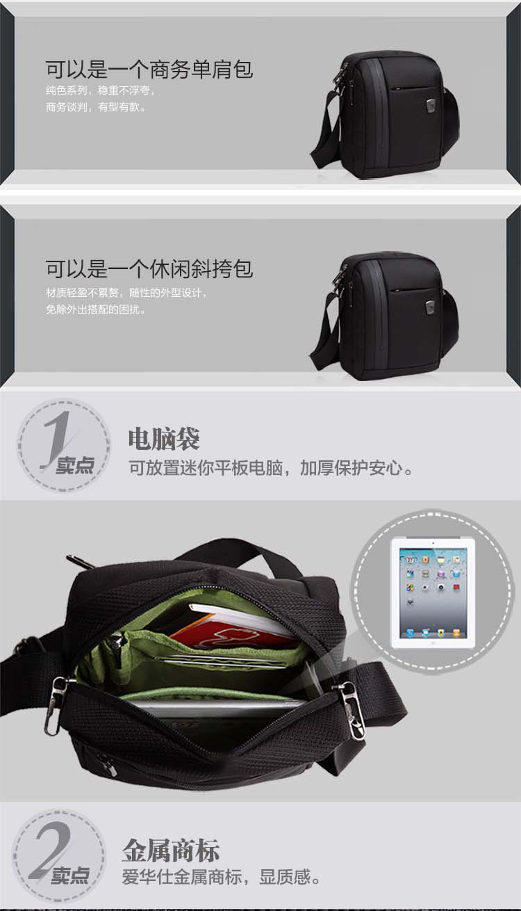 单肩包新品男士斜挎包商务休闲小挎包男包OCK5421 黑色